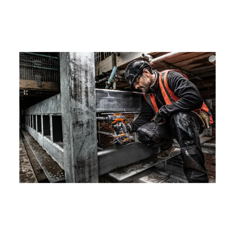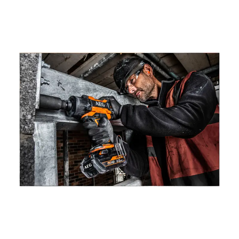 The AEG 18V Brushless Impact Wrench - Without battery or charger BSS18HTF12B6-0 is ideal for tightening and loosening in the fields of automotive, agriculture, or industry. It is perfectly suited for tasks such as assembling large frameworks or anchoring into the ground. With a torque of 1550 Nm for tightening and 2100 Nm for loosening, you will have the most powerful impact wrench on the market in your hands. This tool is used with an 18V battery (sold separately) from AEG's Pro 18V range.