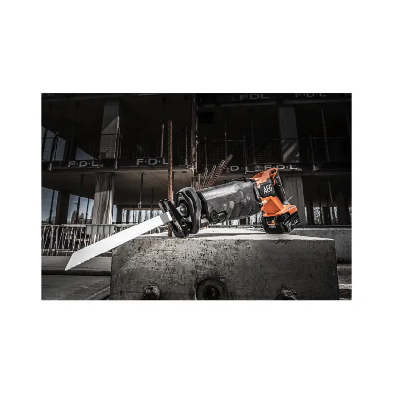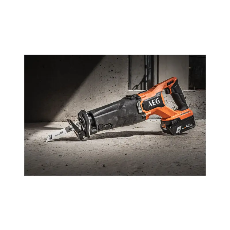 AEG 18V Pack - Brushless Reciprocating Saw 32 mm - 4.0 Ah Battery - Charger this reciprocating saw is the ally you need to cut various materials with precision. This tool will delight both professionals and DIY enthusiasts. It will accompany you in all your cuts and with great freedom of movement since you won't have the constraint of an electric cord. Its Brushless motor will provide you with power and durability, allowing you to reach up to 3000 strokes/min.