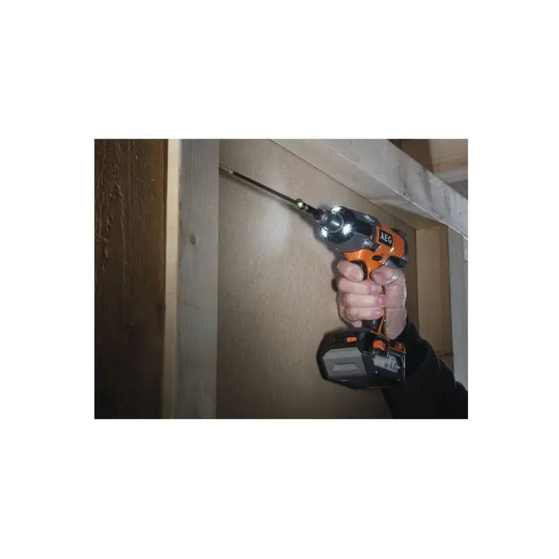 The AEG 18V Impact Wrench and its accessories: 2 x 4.0 Ah batteries and its charger are ideal for screwing and unscrewing. Compact and powerful, it features a magnesium housing for increased durability.