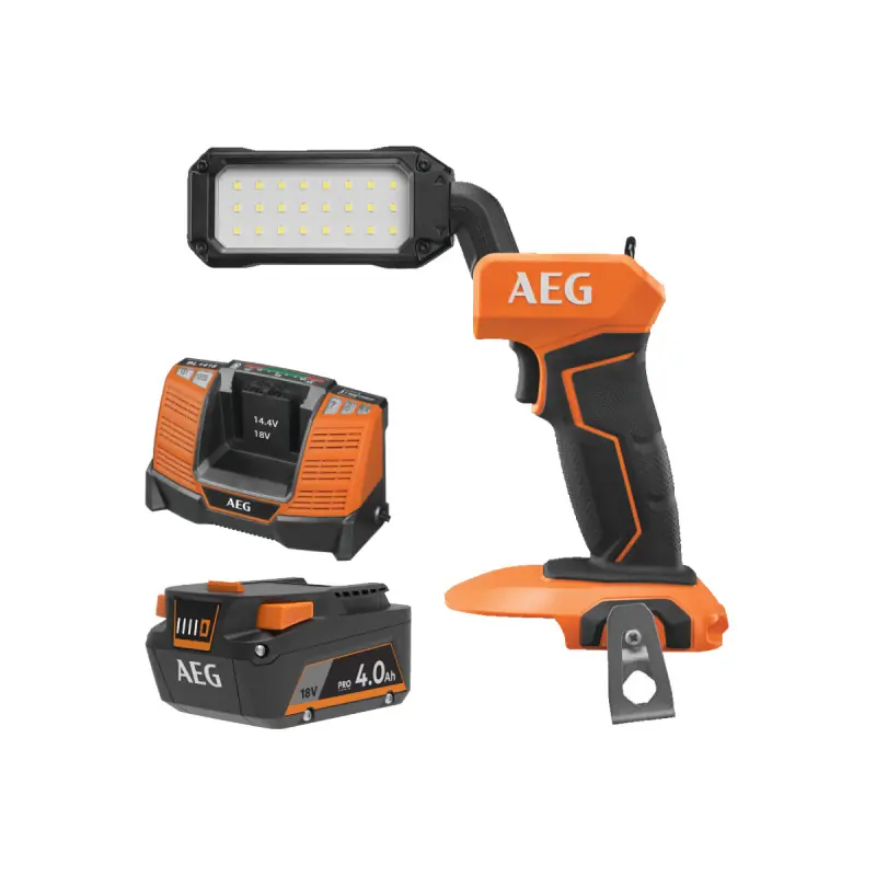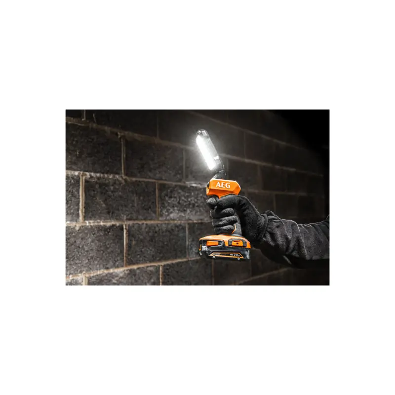 AEG 18V Pack - Pivoting LED Torch 800 lumens - 4.0 Ah Battery - Charger enjoy its 90° pivoting head for working in poorly lit areas. The lamp is compact and powerful with its 340 lumens.