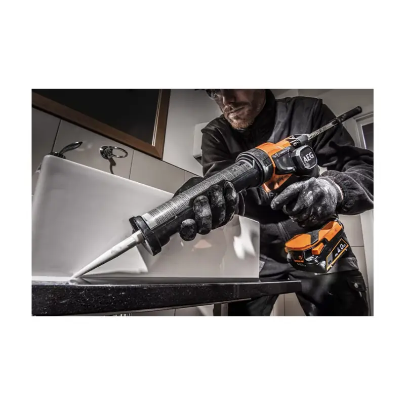 AEG 18V Silicone Gun - without battery or charger - BKP18C2-310-0 ideal for applying glue or silicone. It features a standard 310 ml cartridge holder. The device has a force of 4000 N even for high-viscosity products.