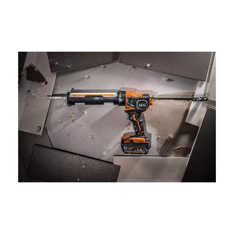 AEG 18V Pack - Silicone Gun - 4.0 Ah Battery - Charger - Storage Case ideal for applying glue or silicone. It features a standard 310 ml cartridge holder. The device has a force of 4000 N even for high-viscosity products.