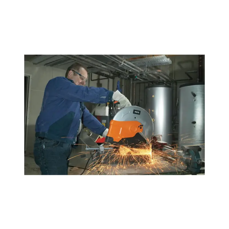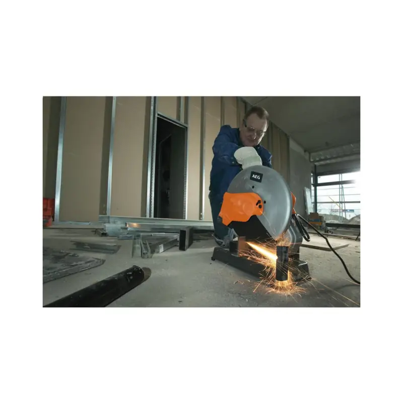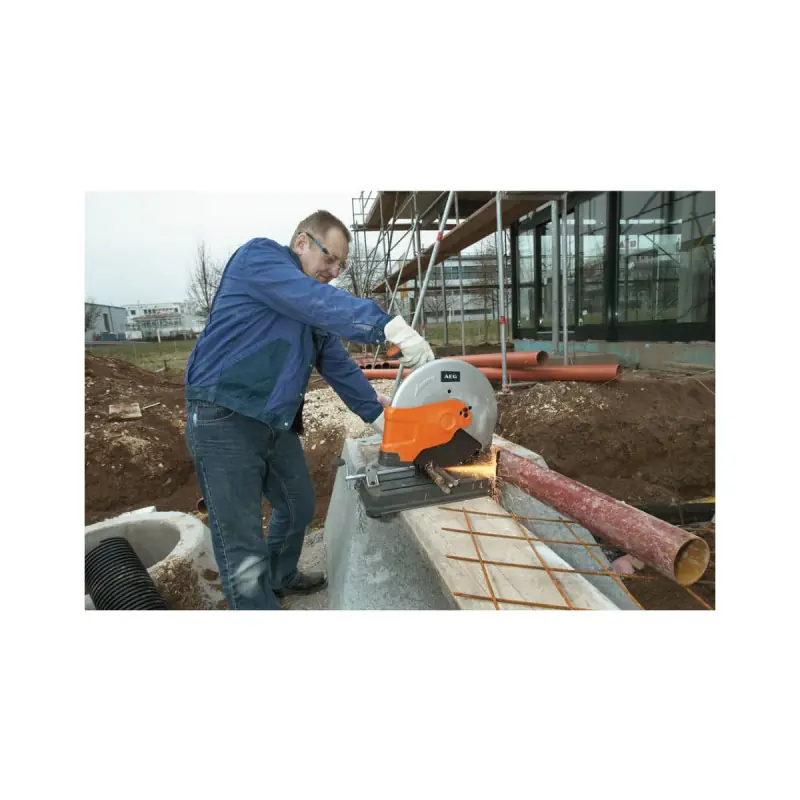 The AEG 2300W 355mm SMT 355 Electric Disc Cutter ready to use will allow you to cut safely. It features an oversized table and rubber feet to enhance the stability of your machine.