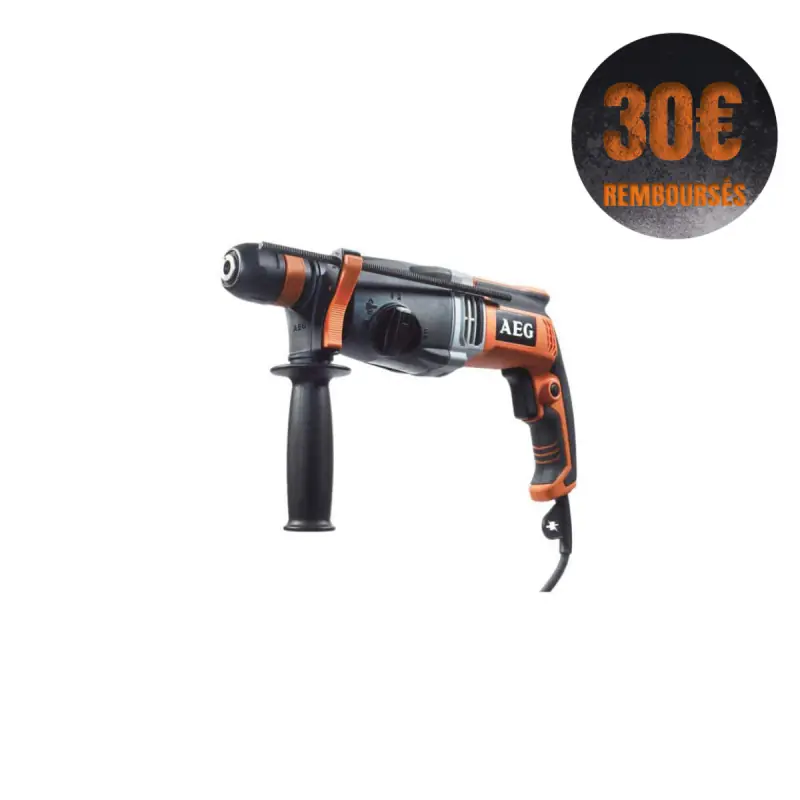 A AEG electric rotary hammer - KH 28 Super XE - SDSPLUS - 1010W - 2.8 Joules with impact reducer for fragile materials. Its FIXTEC automatic locking system allows for simple and quick bit changes. It can drill both concrete and fragile materials thanks to the impact reducer. The hammer is equipped with overload protection for safe operation and a SoftGrip coating that ensures excellent user comfort.