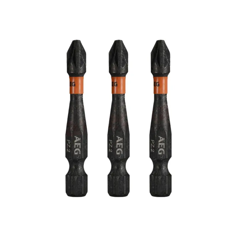 Improved AEG ballistic screwdriver bits - 50 mm - 3 pcs - PZ2 designed to work with impact during the assembly and disassembly of fasteners. Due to the high torque twisting zone, the force transmission is reduced, resulting in a long service life.