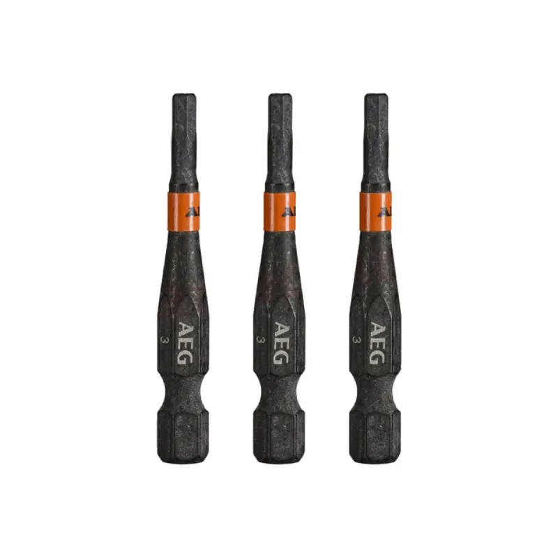 Reinforced ballistic screwdriver bits AEG - 50 mm - 3 pcs - HEX3 designed to work with impact during the assembly and disassembly of fasteners. Due to the high torque twisting zone, the force transmission is reduced, resulting in a long service life.