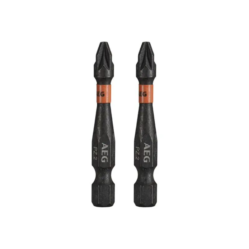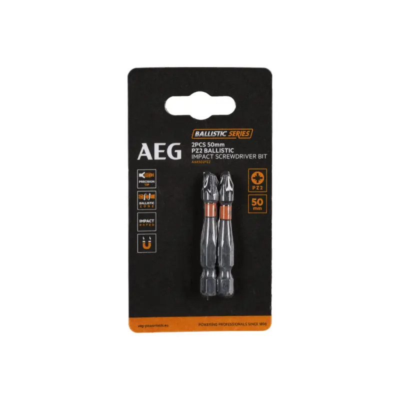 Reinforced ballistic screwdriver bits AEG - 50 mm - 2 pcs - PZ2 designed to work with impact during the assembly and disassembly of fasteners. Due to the high torque twisting zone, the force transmission is reduced, resulting in a long service life.