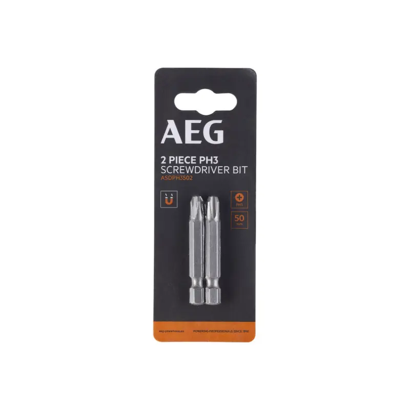 These AEG screwdriver bits - 50 mm - Steel - 2 pcs - PH3 are designed for all your screwing tasks. Their universal format allows for use with electric tools from different brands, proving their versatility. The bits are made from high-quality steel, ensuring a long lifespan.