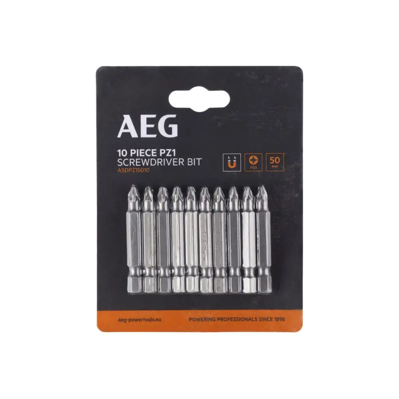 TheseAEG screwdriver bits - 50 mm - Steel - 10 pcs - PZ1 are designed for all your screwing tasks. Their universal format allows for use with electric tools from different brands, proving their versatility. The bits are made of high-quality steel, ensuring a long lifespan.