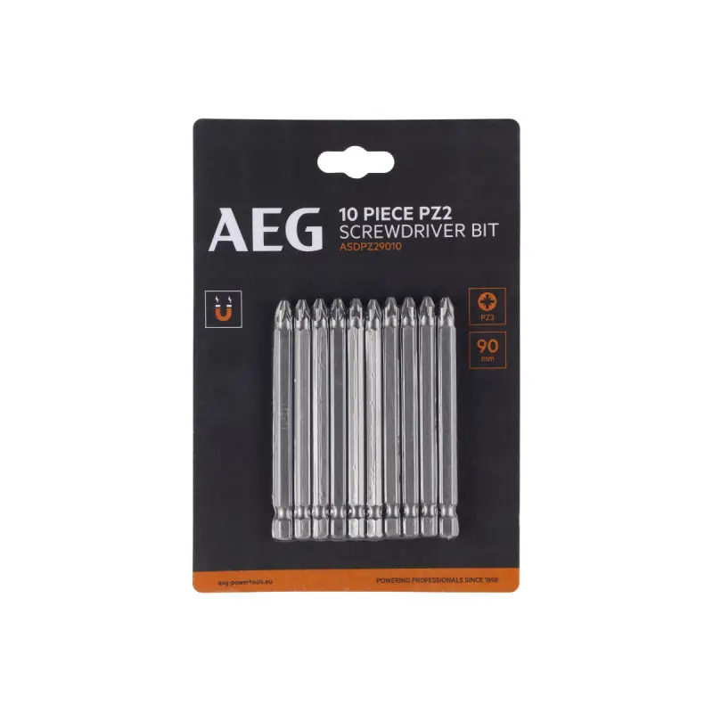 TheseAEG screwdriver bits - 90 mm - Steel - 10 pcs - PZ2 are designed for all your screwing tasks. Their universal format allows for use with electric tools from various brands, demonstrating their versatility. The bits are made from high-quality steel, ensuring a long lifespan.