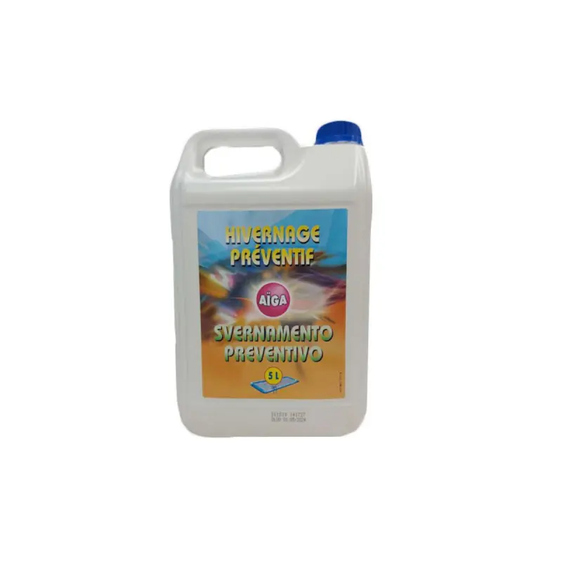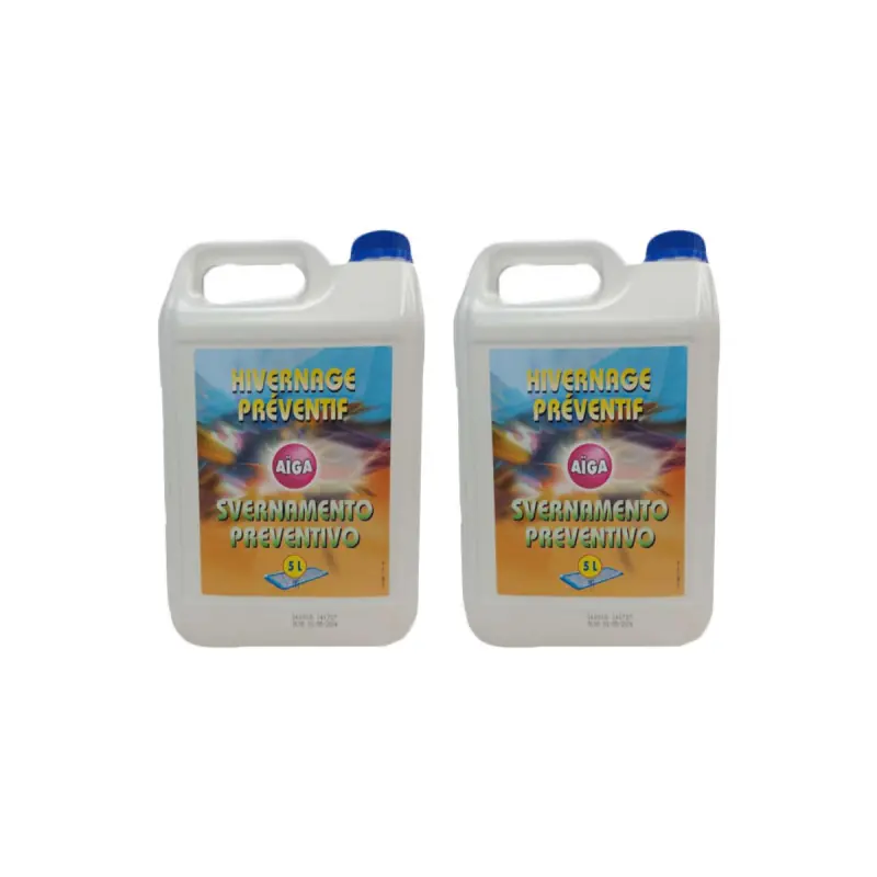 This set of 2 Aiga MAREVA preventive winterising products - 5L - 161018U is ideal for pools of up to 150 m³ of water. It has several functions: anti-algae, anti-bacteria, and anti-limescale.These products should be used during winter when the water temperature of the pool is below 16°C. Please first clean the filter, the waterline, check the pH, and then pour in the winterising product. Compatible with all treatments, they are guaranteed to be free from copper sulfate, EDTA, and polyphosphates. In spring, resume your usual regular maintenance product. These products will take care of your pool throughout the winter: allowing you to swim immediately when the nice weather arrives!