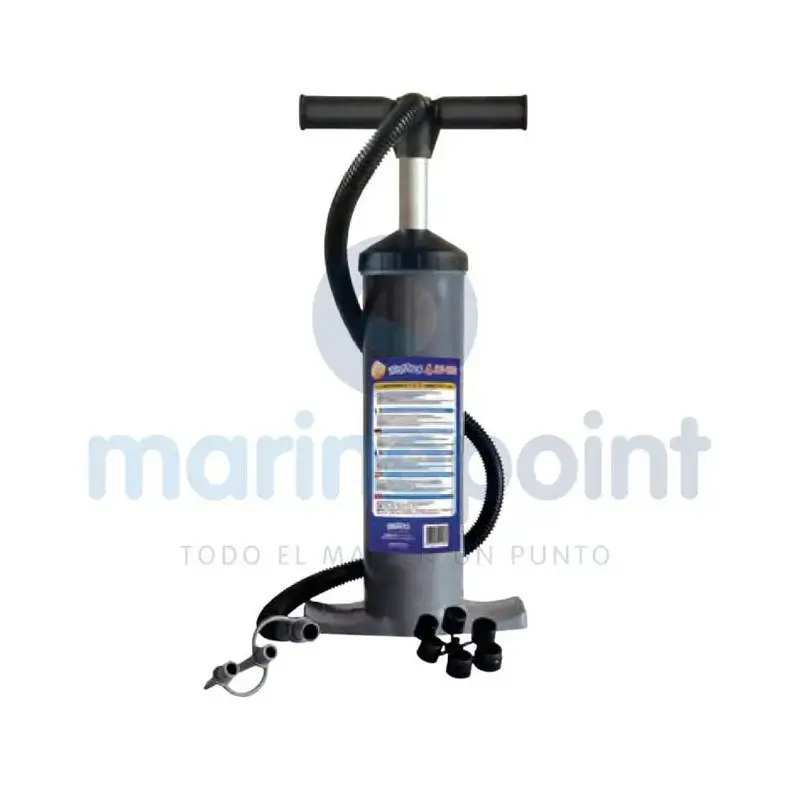 Double action pump with reinforced PVC tube. Aluminium piston and rubber and silicone seals.