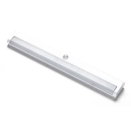 Efficient LED wardrobe lamp with motion sensor and warm 3000K light.