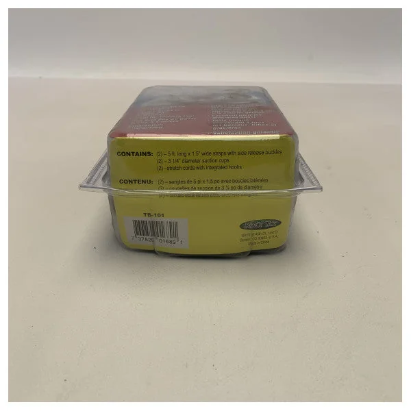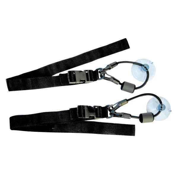 - Includes: 2 adjustable straps, 2 large suction cups, 2 elastic cords