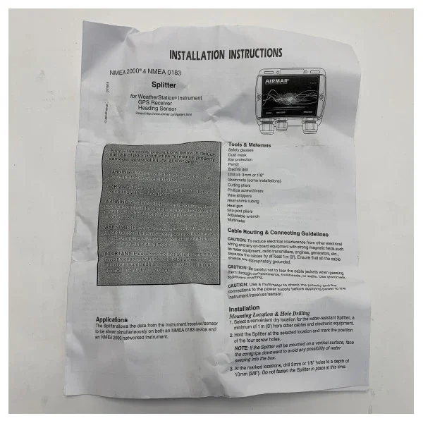 - Function: Splits the signal from an Airmar transducer to two separate devices.