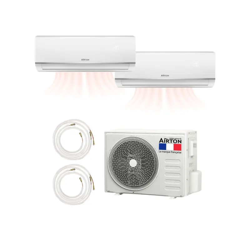 When the cold sets in and you need to heat your home, this AIRTON reversible bi-split heat pump pack becomes an essential item to install in your home. You can install two indoor air conditioners on a single system. It’s up to you to choose which rooms you want to place your units in, and they can be managed individually to have total control over the temperature. Throughout the year, you can enjoy warm or cool air. Moreover, these devices have been designed with respect for the environment.