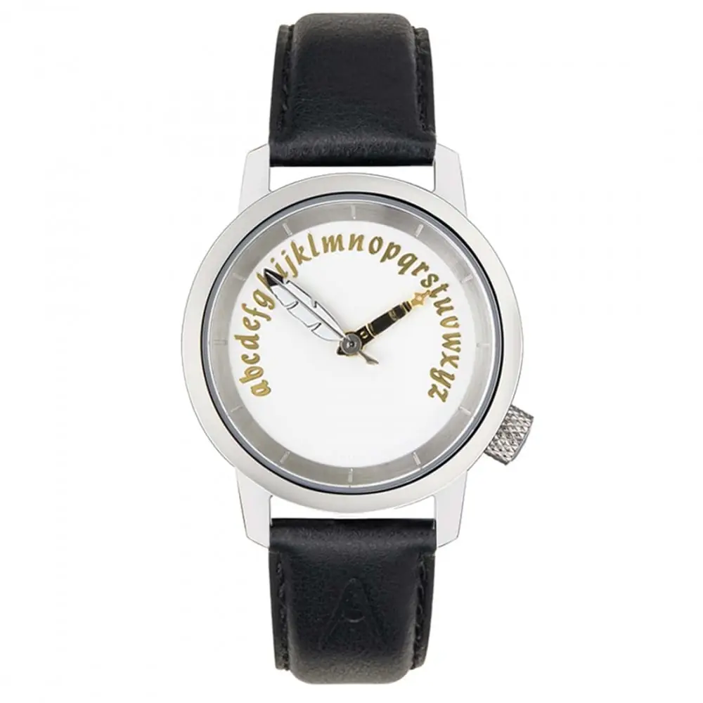 The Akteo Écrivain W29 watch is a thematic watch dedicated to lovers of writing. Its dial is decorated with two quill and fountain pen-shaped hands, a creative nod to the literary world.