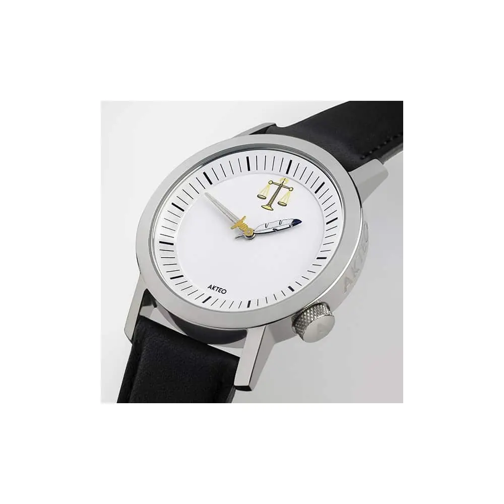 Discover the Akteo Justice 42 Watch, a unique thematic timepiece with a stylish leather strap.
