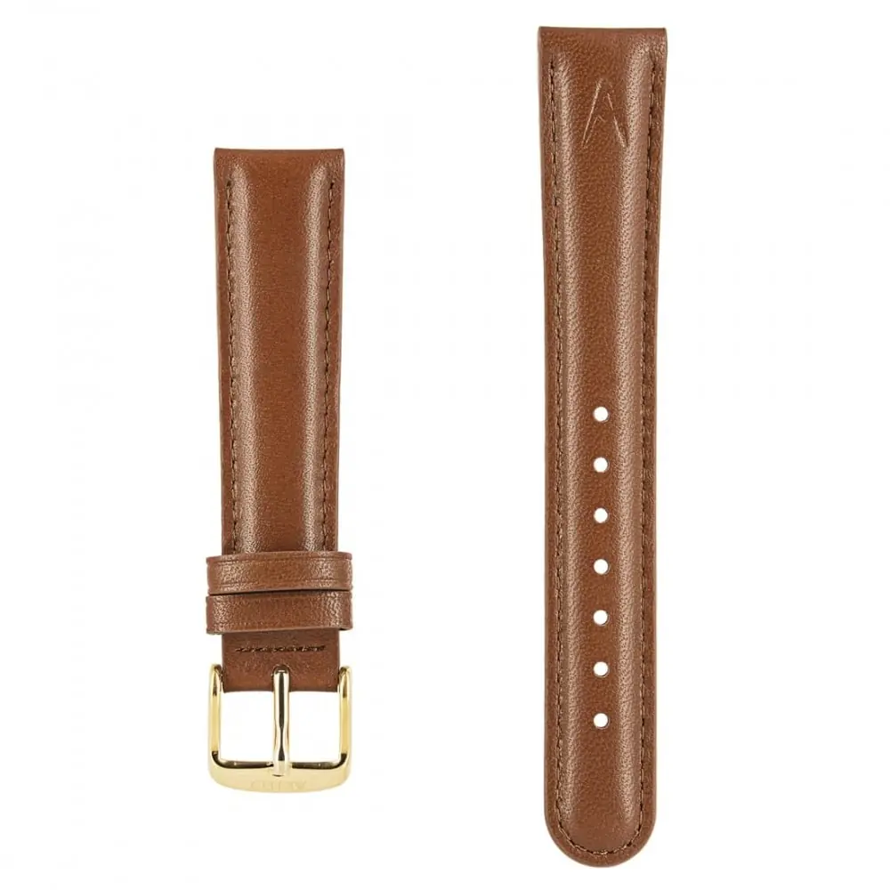 brown leather strap designed specifically for akteo watches.. 18 mm wide with golden buckle..