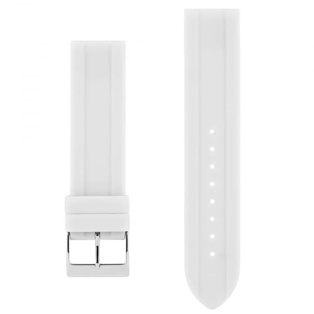 white silicone strap designed specifically for akteo watches.. 22mm wide with silver buckle..