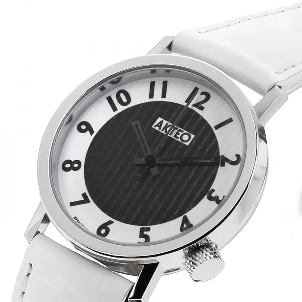 Its vintage side will please you thanks to its white leather strap and its chrome dial with black and white background.