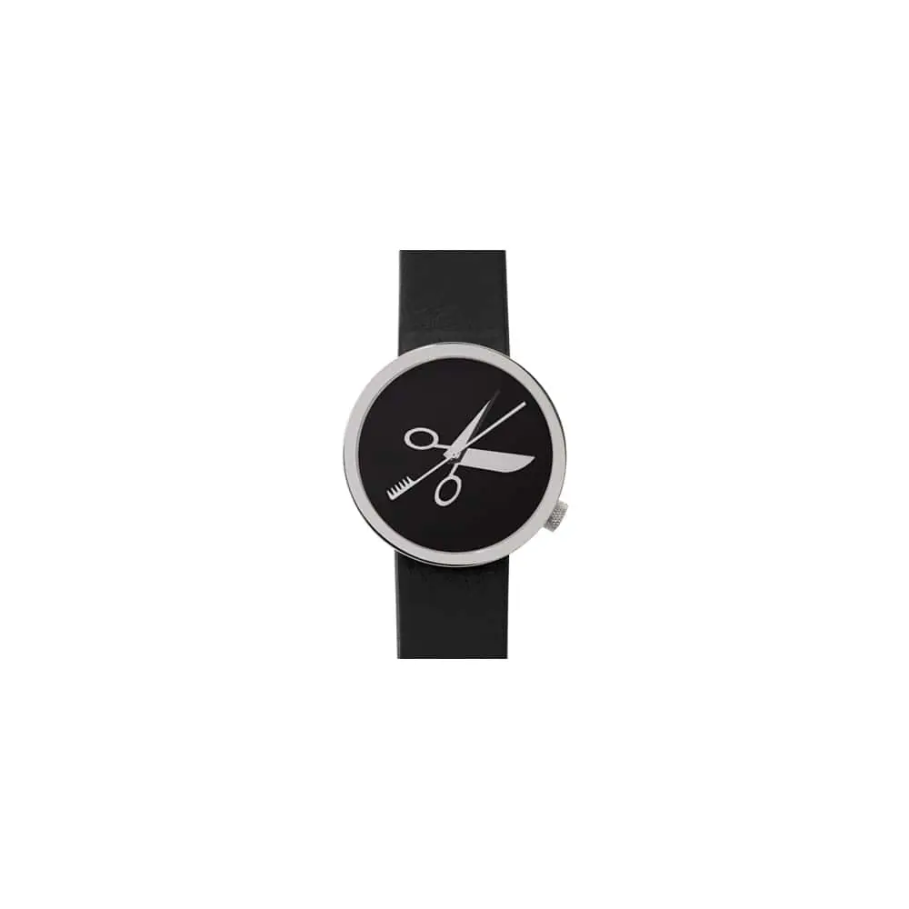 an aktéo watch made in france that honors the profession of hairdressing. the hour and minute hands are represented by the hairdresser's essential tool the scissors!!! the comb plays the role of the second hand to pass the seconds....