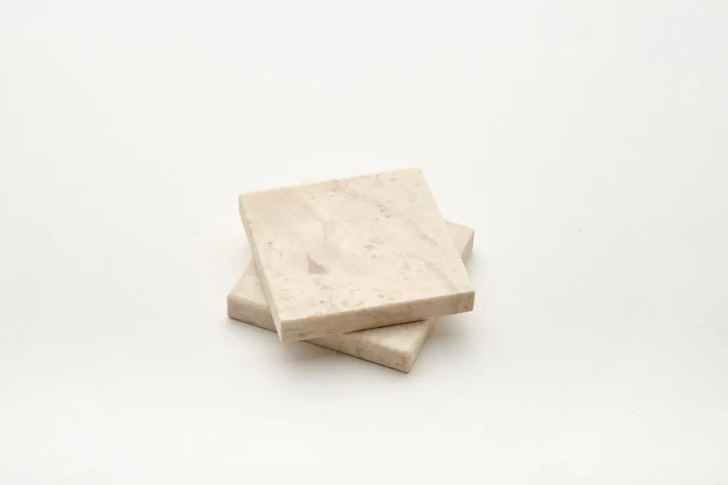 Whoever has been talking to us about marble and stone is well aware that we are absolutely in love with Albaperla. Different reasons: it is versatile, its funky textures which gives a great personality. From small to large detail it is a winner! Coasters cm 8x8x1 - water resistant treated. Price refers to a single piece