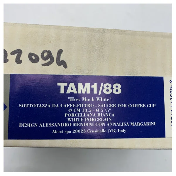 Coaster Alessi TAM 1/88, designed by Alessandro Mendini in collaboration with Annalisa Margarini. This stylish coaster is made from high-quality white porcelain and is specifically designed for coffee cups with a diameter of 13.5 cm and an inner size of 5.7 cm. The sleek, minimalist design makes it a perfect addition to any maritime or nautical dining table. Beautifully finished with a glossy layer, this Alessi coaster combines functionality with elegance and durability. Ideal for use on board ships or in maritime environments where quality and style come together.