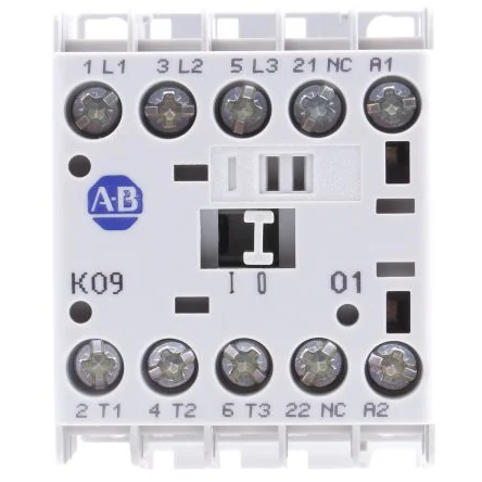 Allen Bradley 100-K Miniature Contactors. The Bulletin 100-K Miniature Contactors by Allen Bradley offer optimal flexibility due to their compact size, providing an ideal solution to suit your system requirements. These versatile contactors are specially designed for commercial and light industrial applications where panel space is limited. They ensure reliable, safe, and efficient switching capabilities for your motor control system, giving you maximum performance in a small package. These miniature units have less panel depth requirements and are shallower than standard IEC contactors. They are available with several contact ratings and AC or DC operating coils. Optional 2- or 4-pole auxiliary contact blocks in a variety of auxiliary contact configurations are available separately. These cost-saving contactors are rated up to 690V and have 3 Poles plus 1 Auxiliary contact. The dimensions are: (H) 50 x (W) 45 x (D) 53mm. These contactors have mechanically linked performance between the main contacts and internal aux contacts, which allows status feedback if contact weld occurs. Mirror contact prevents any status condition if a NO pole welds. Features and Benefits:. Compact size, allowing broader application use Choice of full-voltage non-reversing and reversing contactors AC and DC have the same dimensions IP2X Finger Protection for improved safety Optional integrated surge suppressor Fully compatible with Bulletin 193-K bimetallic overload relay Mechanically linked contacts to IEC 60947-5-1 on base unit Mirror contacts to IEC 60947-4-1 throughout. Certifications:. CE Marked cULus Listed (File No. E41850, Guide NLDX, NLDX7) CCC Suitable for use with IE3 Motors (IEC 60034-30)