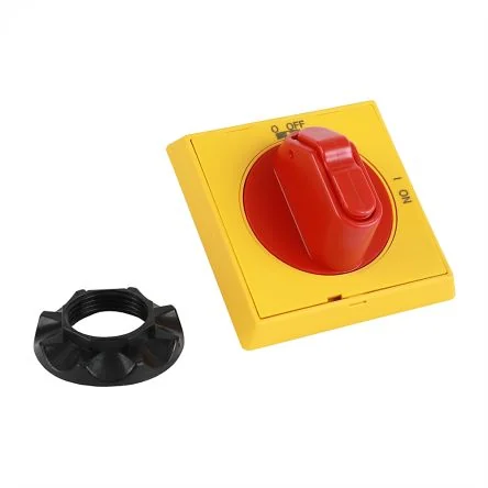 The Rockwell Automation door coupling handle used up to three padlock in OFF position and it is defeatable. Its colour is red/yellow.Protection class IP64 Type 1/3R/12