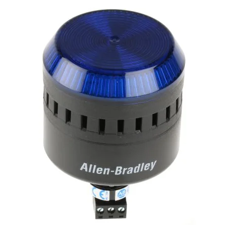 Allen Bradley Sounder BeaconThe Allen Bradley sounder beacon is a panel-mount sounder with blue LED. It has an adjustable volume that ranges between 85dB and 103dB. It mounts in standard 22.5mm hole in the control panels. This product is useful in industries.Features and BenefitsSupply voltage is 24VAC or 24VDC Selectable continuous or pulsing (steady/ flashing) 65mm adds alternating frequency Light synchronized with sound Operating temperature range is between -25°C and 60°CCertificationsIP65 rated