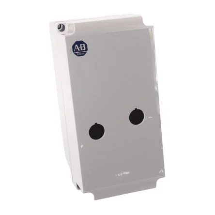 Durable blue polycarbonate control station enclosure by Allen Bradley, designed for optimal protection.