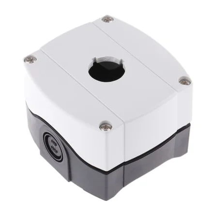 Durable grey plastic push button enclosure with IP66 rating, perfect for various applications.