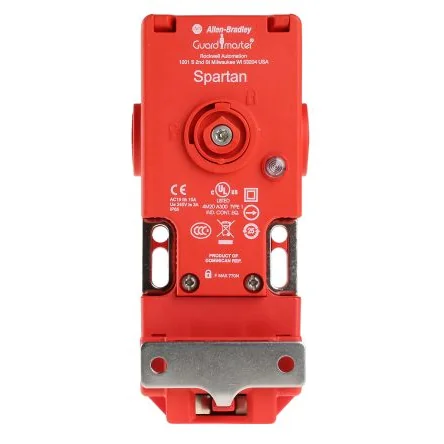 Allen Bradley Guardmaster Spartan 440G-S Solenoid Interlock SwitchGain superior protection for personnel and keep your machine guard door secure with the Spartan 440G-S Solenoid Safety Interlock Switch by Allen Bradley Guardmaster.The 440G-S36005 Power-to-Release safety switch has a supply voltage rating of 230VAC/DC and M20 conduit entry. It features a high holding force of 770N (173 lbs) for greater stability. It has 2NC Safety Contacts and 1NO Auxiliary Contact. The housing material is made of UL approved resilient glass-filled polyester, and it has a thermal current of 10A and an operating temperature of -20°C to 60°C.This Spartan guard locking device is a positive mode, tongue operated switch that isolates power to machinery when the guard is released and keeps safety guards firmly locked in place while a machine is running. The mechanism can only be released when a signal is applied to the internal solenoid, allowing the tongue to be removed from the switch. This cost-effective safety interlock switch offers a higher level of protection for personnel as it restricts access to unsafe areas where machinery is in motion and can cause injury. It also helps prevent damage to machinery from premature interference. It is well suited for use with machines which do not instantly stop.Features and Benefits:• Includes a Standard type actuator made of stainless steel • Lid mounted visual status indication for rapid troubleshooting and door status • Rotatable head with 4 possible actuator entry positions • High ingress Protection rating of IP67 which ensures that it can withstand temporary immersion in water and is also dust-tight • Ideal for use with hinge, sliding, and lift-off doorsCertifications:IP67 rated EN954-1 ISO13849-1 IEC/EN60204-1 NFPA79 EN1088 ISO14119 IEC/EN60947-5-1 ANSI B11.19 AS4024 CE certified cULus approved CSA certified TUV certifiedAllen Bradley Guardmaster have a broad range of machine monitoring and locking components that are built to high global standards for quality and reliability. Their affordable solutions are expertly designed to meet every requirement and improve protection and productivity in the workplace.What are Solenoid Interlock Switches?A solenoid interlock switch is a type of safety switch with an internal solenoid; a wire coil which converts electrical energy to mechanical. This type of mechanism limits access to dangerous areas where machinery may be functioning by ensuring that that barriers remain securely shut. The safety guard can only be opened through either energising (Power to Release) or de-energising (Power to Lock) the solenoid with an external signal. They are often used in industrial environments, for example with high inertia rotating machines.