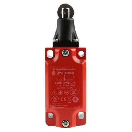 Allen Bradley Guardmaster Limit SwitchThe Allen Bradley Guardmaster 440P series slow action limit switch has 2NO/2NC contact configuration and a metal roller plunger actuator. It has a screw connection and 1x M20 connection type. The operation of this limit switch is achieved by the sliding action of the guard or other moving objects, deflecting the plunger or lever. The Senator range offers the option of rotating the head in 90° increments before installation to allow ease of mounting.Features and BenefitsContact rating is 1.2A/600V, 1.4A/500V, 3A/240V and 6A/120V Large selection of actuator heads Torque required to operate is 11Nm Positive operation, forced disconnection of contacts Snap-acting, slow make before break or slow break before make contact blocks Minimum mechanical life of 10000000 cyclesApplicationsMachine beds Crane arms Lifts & elevatorsCertificationsIP66 rated EN954-1 ISO13849-1 IEC/EN60204-1 NFPA79 EN1088 ISO14119 IEC/ EN60947-5-1 ANSI B11.19 AS4024.1 UL approved TUV approved CE certified CCC certified