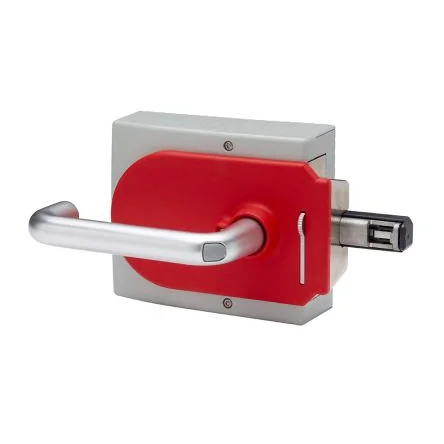 Allen-Bradley Guardmaster 442G Multifunctional Access Box, an integrated access control and guard locking device which provides a complete safeguarding solution for full body access applications. A high holding force, wide tolerance to guard misalignment (+/-5 mm), and an escape release option make the 442G an ideal choice for safeguarding large guard doors typically used in applications where full body access to the safeguarded area is required.High holding force 2000N Unique RFID coded bolt actuator Four bright LEDs provide status and diagnostics Outputs for door position, bolt position, and lock status are available to the control system Two integrated hasps available to affix padlocksHandle Assembly, 442G Access Box, Left-Hinged Door, with Bolt Locking Mechanism