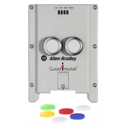 Allen-Bradley Guardmaster 442G Multifunctional Access Box, an integrated access control and guard locking device which provides a complete safeguarding solution for full body access applications. A high holding force, wide tolerance to guard misalignment (+/-5 mm), and an escape release option make the 442G an ideal choice for safeguarding large guard doors typically used in applications where full body access to the safeguarded area is required.High holding force 2000N Unique RFID coded bolt actuator Four bright LEDs provide status and diagnostics Outputs for door position, bolt position, and lock status are available to the control system Two integrated hasps available to affix padlocks442G-MAB Replacement Cover, 2 Push Buttons