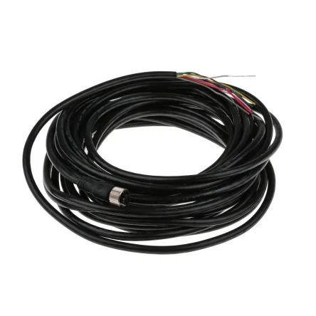 Allen Bradley Guardmaster 889D-F8AB-10 Cable for GuardShield Safety Light CurtainsComplete your GuardShield Safety Light Curtains system with the 889D-F8AB-10 cordset by Allen Bradley Guardmaster and ensure optimal protection for personnel around hazardous areas.The 889D-F8AB-10 cordset is a straight female 8-Pin DC micro unshielded PUR cable. It has a length of 10m (32.8ft). The jacket material is made of resilient black PUR. The wire rating for this connector is 24AWG 36V DC/ 30V AC 1.5A. The contacts are made of nickel-plated brass. This cable is designed for use with the 440L GuardShield Safety Light Curtains.The GuardShield family of safety light curtains are general-purpose devices for presence sensing. They can be used on hazardous machinery to ensure perimeter and access detection and point of operation detection, helping to prevent injury to personnel. Point of Operation Control light curtains (POC) are used specifically for finger, hand and arm recognition and should be placed close to the hazard where personnel interact with the machine. This type of safety system uses a transmitter which emits sequential pulses of infrared light to a receiver. When the beams are interrupted a stop signal is immediately sent to the machine.The GuardShield Light Curtains have convenient DIP switch selectable Modes of Operation, located beneath a security door in the end caps, which offer advanced features such as: Fixed blanking (teachable), Floating blanking (one or two beam), Beam coding, Start/restart interlock, External device monitoring (EDM), 14mm resolution (finger detection), Two safety solid state and one auxillary non-safety outputs and easy maintenance with the Quick Disconnect cables (4-pin for the sender, 8-pin for the receiver).Allen Bradley Cordsets are made to be highly dependable, versatile, safe, and rugged enough to suit a variety of industrial applications. They adhere to UL2238 cable assembly standards and the NFPA-79 electrical standard, which require rigorous quality and performance testing. The cordsets are expertly designed to offer smooth connectivity and decrease downtime. Features and Benefits:• 10m length • High IP67 (NEMA 6P) enclosure rating – dust-proof and water resistant • PUR jacket offers higher oil and chemical resistance which is better suited for harsh environments • Overmolded connector construction provides application durability • Ratcheting coupling nuts for vibration resistance Note: A sender cable and a receiver cable will be required for the GuardShield Safety Light Curtains. For suitable relays, see the Minotaur range of products (e.g. 447-5587). Installation and operation of the Safety Light Curtains must be in strict accordance with accompanying operating instructions.Certifications:EN 1088 EN 954-1 cat. 3 EN 60204-1 CCC CE certified CUL certified KC UL approved IP67 ratedRockwell Automation is a global leader in industrial automation and digital transformation, and brings smart manufacturing to life. With a long legacy of creating Allen-Bradley® integrated control and information solutions, we help make you as productive as possible. Our portfolio of sensing, safety and motor control products can support your move towards smart machine applications. Allen-Bradley® IO-Link sensors are data-enabled and communicate with all field buses, providing diagnostic and health information about the device before a machine stops, and enabling quick production changeovers through fast parameter downloads from PLCs into the device. This reduces machine downtime and increases manufacturing OEE. For safety components, products with built-in diagnostics simplify the set-up of the smart device, and reduce maintenance, leading to a more efficient, machine data-driven approach.