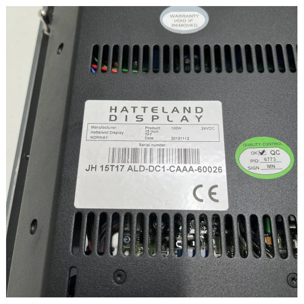 Hatteland Alphatron AlphaScreen 15 inch - JH15T17 ALD-DC1-CAAA Product description: The Hatteland Alphatron AlphaScreen 15 inch JH15T17 ALD-DC1-CAAA is a robust and powerful monitor that is perfect for use in demanding environments. With its bright 15 inch display, powerful processor, and extensive connectivity options, this monitor is ideal for applications in the maritime, industrial, and military sectors. Features: 15 inch XGA (1024 x 768) TFT screen with LED backlighting High brightness of 1000 cd/m² for optimal visibility in all lighting conditions IP67 certified water and dust resistant IK08 certified impact resistant Wide temperature range of -20°C to +70°C Anti-reflective screen for improved visibility in sunlight Optical bonding for reduced reflection and improved contrast ratio Multi-touchscreen operation Built-in GPS receiver Various connectivity options, including HDMI, DVI, VGA, and USB Specifications: Screen diagonal: 15 inch Resolution: 1024 x 768 (XGA) Brightness: 1000 cd/m² Contrast ratio: 1000:1 Viewing angle: 170°/170° Response time: 5 ms Touchscreen: Multi-touch Protection class: IP67, IK08 Temperature range: -20°C to +70°C Power supply: 12-24 VDC Weight: 2.7 kg Applications: The Hatteland Alphatron AlphaScreen 15 inch JH15T17 ALD-DC1-CAAA is ideal for use in the following applications: Maritime sector: bridges, navigation stations, engine rooms Industrial sector: machine control, process monitoring, vehicle mounting Military sector: vehicles, command centres, surveillance systems
