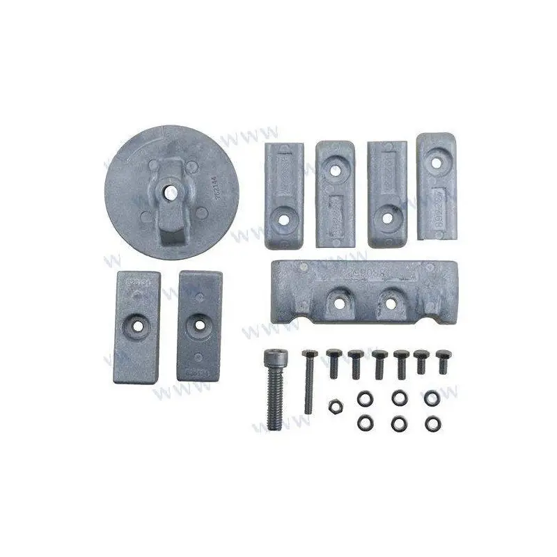 Protect your Mercury Verado 6-cylinder engine with this complete aluminum anode kit. Anodes are essential components to prevent galvanic corrosion in marine environments.