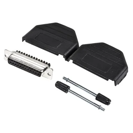 D-Sub Connectors and Hood Kits. 15 and 25-way D-Sub connectors with direct screw connection supplied as a kit, including hood and screws Male or female connectors available Choice available of plastic or metal hood, straight or right-angle cable entry Technical specification identical to those of the screw termination D-Sub connector, see stock no. ; 615-5954 615-5954 and range