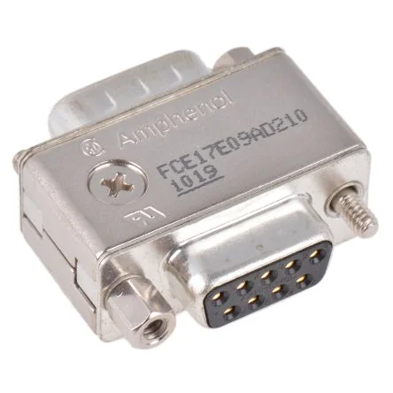 D-Sub Filtered Adaptors. These Amphenol Filtered D-Sub FCE17 Series Male to Female Adapters are supplied with Mounting Posts. Filter Capacitance of 470 pF, 1000 pF or 5600 pF are available indicated by a 1, 4 and 9 in the Manufacturers Part Number i.e. FCE17-*****-*X** respectively Insulation Resistance 3000 MO Contact Resistance 15 mO Shells are Tin plated Steel Outside shells are Zinc Diecast Nickel plated #4-40 UNC threaded Mounting Posts