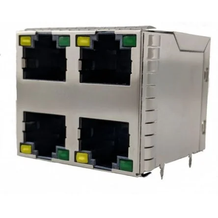 The Amphenol RJE4W series of modular jacks meet CAT5e performance per EIA-568-C.2. It supports gigabit Ethernet protocols. The shielding available for increased EMI performance and LEDs for link activity and network speed verification.Operating temperature -40°C to +85°C