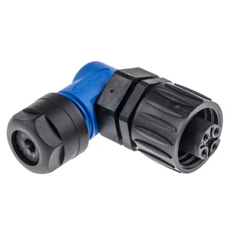 IEC60664-1, IEC60512-5-2, Test 5b, IEC60512-3-1, IEC60512-2-1. Eco-Mate Cable Connectors, 90°. From Amphenol, these right angle Eco Mate series circular connectors have a compact and robust design, with a screw lock connection that meets the high requirements of industrial technology applications. The 90° Eco Mate circular connectors are easy to assemble and are supplied with fittings which include strain relief, mounted gaskets, cable glands and clamping rings. The screwed cable gland has a robust thread for a secure connection. The housings of these Eco Mate circular connectors are made from premium moulding material and are ergonomically designed for safe handling. These Eco Mate series connectors offer a protection class IP 65/67 in their mated condition in accordance with DIN EN 60526 making them ideal for industrial environments. Features ; Benefits. • Screw lock connection • Quick and Easy Assembly • Keyed Orientation • Robust, ergonomic design • Pre-loaded ground contact • IP 65/67 rated. Applications. These Eco Mate series circular connectors are designed for use in the plant construction and machine building industries. Applications include measuring and controlling applications and power supply technology. FAQ. Q: Are there accessories available for these connectors? A: Connector caps are available to retain IP rating when unmated. Q: What are the advantages of Eco-Mate over similar connectors? A: As well as being easy to handle and quick mating, these connectors are impact, vibration and UV resistant. They present a robust connector solution for almost any environment. Q: Does this connector require special tooling? A: A ratchet crimp tool is available for affixing crimp contacts. (See ; 241-2786 241-2786 )
