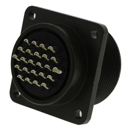 Cable-mounting plugs (pin contacts) will only mate with chassis sockets. Cable-mounting sockets will only mate with chassis plugs. Amphenol MS MIL-C-5015 Circular Receptacle Connectors. Amphenol MS Series Class A MIL-spec connectors that meet the demanding performance requirements of MIL-C-5015. These box mounting circular receptacle connectors have proven electrical capability for equipment applications where durability is important. These circular MIL-C-5015 connectors have threaded couplings and single key/keyway shell polarization for an accurate and reliable connection. The solid shells of these MS Series circular MIL-C-5015 connectors are made from high grade aluminium alloy. The shells are electrically zinc plated with an olive drab chromate finish which ensures a high resistance to corrosion. The inserts of these military circular connectors are made from resilient synthetic rubber which offers a high dielectric strength and resistance to vibration. Features ; Benefits. Durable, field-proven design MIL-C-5015 specification Threaded couplings for quick and accurate mating Keying and polarization to prevent mismating Durable construction with high grade aluminium shell Zinc plated olive drab chromate finish for high resistance to corrosion Rubber inserts for high dielectric strength and resistance to vibration. Product Application Information. These Amphenol MS series class A Mil-Spec circular connectors are designed for to perform virtual functions in powering, testing and ground support systems. Applications include communication equipment, computers and shipboard installation where mechanical forces and physical parameters are not subject to extreme or rapid environmental changes. These MS series MIL spec circular receptacle connectors are mounted on boxes and equipment cases where no cable support is required.
