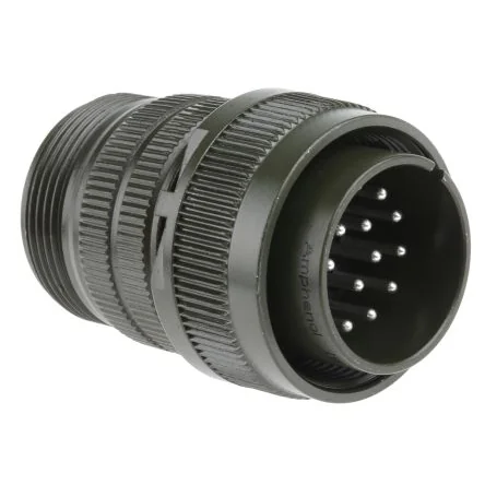 Order cable clamp with bushing separately Cable-mounting plugs (pin contacts) will only mate with chassis sockets. Cable-mounting sockets will only mate with chassis plugs. Amphenol MS MIL-C-5015 Circular Plug Connectors. Amphenol MS Series Class A MIL-spec connectors that meet the demanding performance requirements of MIL-C-5015. These cable mount circular plug connectors have proven electrical capability for equipment applications where durability is important. The Amphenol plugs have threaded couplings and single key/keyway shell polarization for an accurate and reliable connection. The solid shells of these MS Series circular MIL-C-5015 connectors are made from high grade aluminium alloy. The shells are electrically zinc plated with an olive drab chromate finish which ensures a high resistance to corrosion. The inserts of these military circular connectors are made from resilient synthetic rubber which offers a high dielectric strength and resistance to vibration. Features ; Benefits. Durable, field-proven design. Threaded couplings for quick and accurate mating. Keying and polarization to prevent mismating. Durable construction with high grade aluminium shell. Zinc plated olive drab chromate finish for high resistance to corrosion. Rubber inserts for high dielectric strength and resistance to vibration. Product Application Information. These Amphenol plug MS series class A Mil-Spec circular connectors are designed for to perform virtual functions in powering, testing and ground support systems. Applications include communication equipment, computers and shipboard installation where mechanical forces and physical parameters are not subject to extreme or rapid environmental changes. These MS series MIL spec circular cable mount plugs are for use with the MS Series 3100, 3101 and 3102 receptacles
