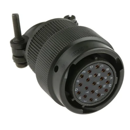 Size 16 contacts, except for stock no. ; 442-1849 442-1849 which has 8 size 16 and 4 size 20 contacts. Amphenol 62GB Series Miniature Bayonet Lock Plug Connectors. Amphenol 62GB miniature circular bayonet cable plug connectors with a convenient bayonet lock mating system for an assured connection. These 62GB miniature bayonet lock connectors are durable and versatile and made to the stringent demands of the MIL-DTL-26482 military standard. These connectors are made from solid aluminium bar with a zinc cobalt olive drab finish, which ensures a high resistance to corrosion. Polychloroprene rubber inserts, insert seals and grommet seals provide a high degree of environmental protection when the connector is mated. These miniature circular bayonet plug connectors are supplied with a grommet nut with an integral strain relief clamp and gold plated contacts. The 62 GB range of connectors are similar in design and function to MIL-DTL-26482, but with an added keyway that helps prevent mismating. Features ; Benefits. Bayonet lock mating system for secure connection Military Specification Compliant to MIL-C-26482E Shell style originally specified in MIL-C-26482 Polychloroprene rubber inserts High degree of environmental protection when mated Durable construction with stainless steel shell Zinc cobalt olive drab finish for high resistance to corrosion Keying to prevent mismating Supplied with gold plated contacts. Product Application Information. These durable 62GB miniature bayonet connectors are resistant to harsh environments and extreme temperatures and are ideal for use in many military and industrial connector applications.