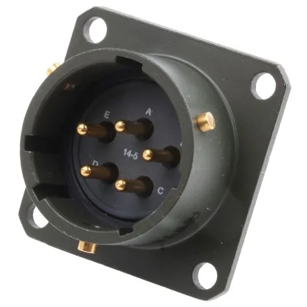 Amphenol Limited, 62GB 5 Way Box Mount MIL Spec Circular Connector ReceptacleOlive, Pin Contacts,Shell Size 14, Bayonet - 62GB-12E14-05PN