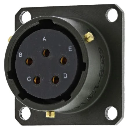 Amphenol Limited, 62GB 5 Way Box Mount MIL Spec Circular Connector ReceptacleOlive, Socket Contacts,Shell Size 14, - 62GB-12E14-05SN