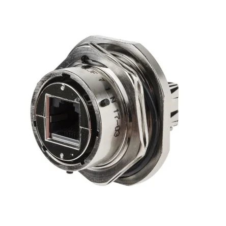 Rugged RJ45 connector with IP68 rating, ideal for harsh environments and reliable networking.